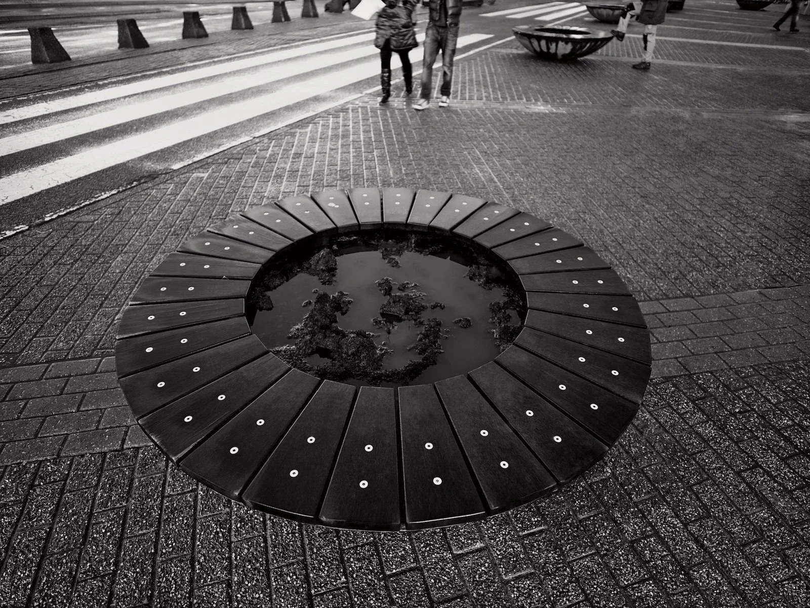 The tree protection ring had no tree and standing water. So graphic. I took the image. DJ mentioned how things like this are rare in Holland. They take trees and plants very seriously, especially in public spaces.